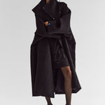 Welcome our all new Extreme Funnel Neck Maxi Coat. This coat embodies our signature approach to timeless tailoring. Crafted from a 50/50 wool & recycled polyester blend for warmth and structure, this oversized piece is effortlessly chic.