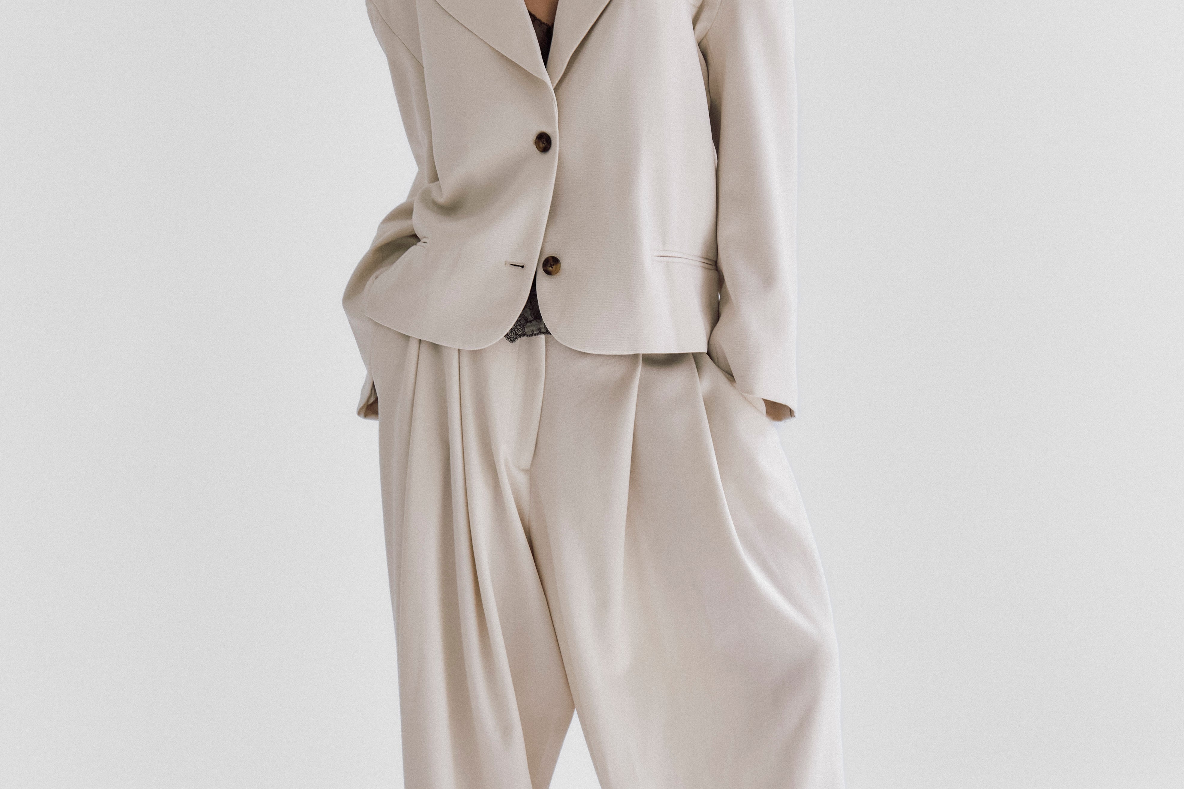 Wear with The ANF Barrel Trousers: Ecru Or The ANF Longline Suit Shorts: Ecru also The ANF Tailored Scarf.